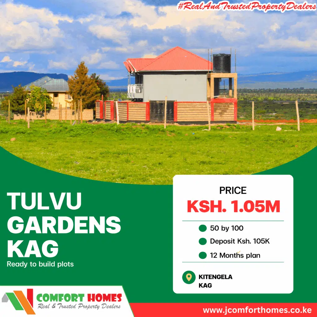 Kisaju Gardens consists of 50 by 100 plots and which are fully serviced with roads, electricity, and water available. It’s a buy and build land as it has all the social amenities available and the fact that it’s only 5KM off Namanga Highway.