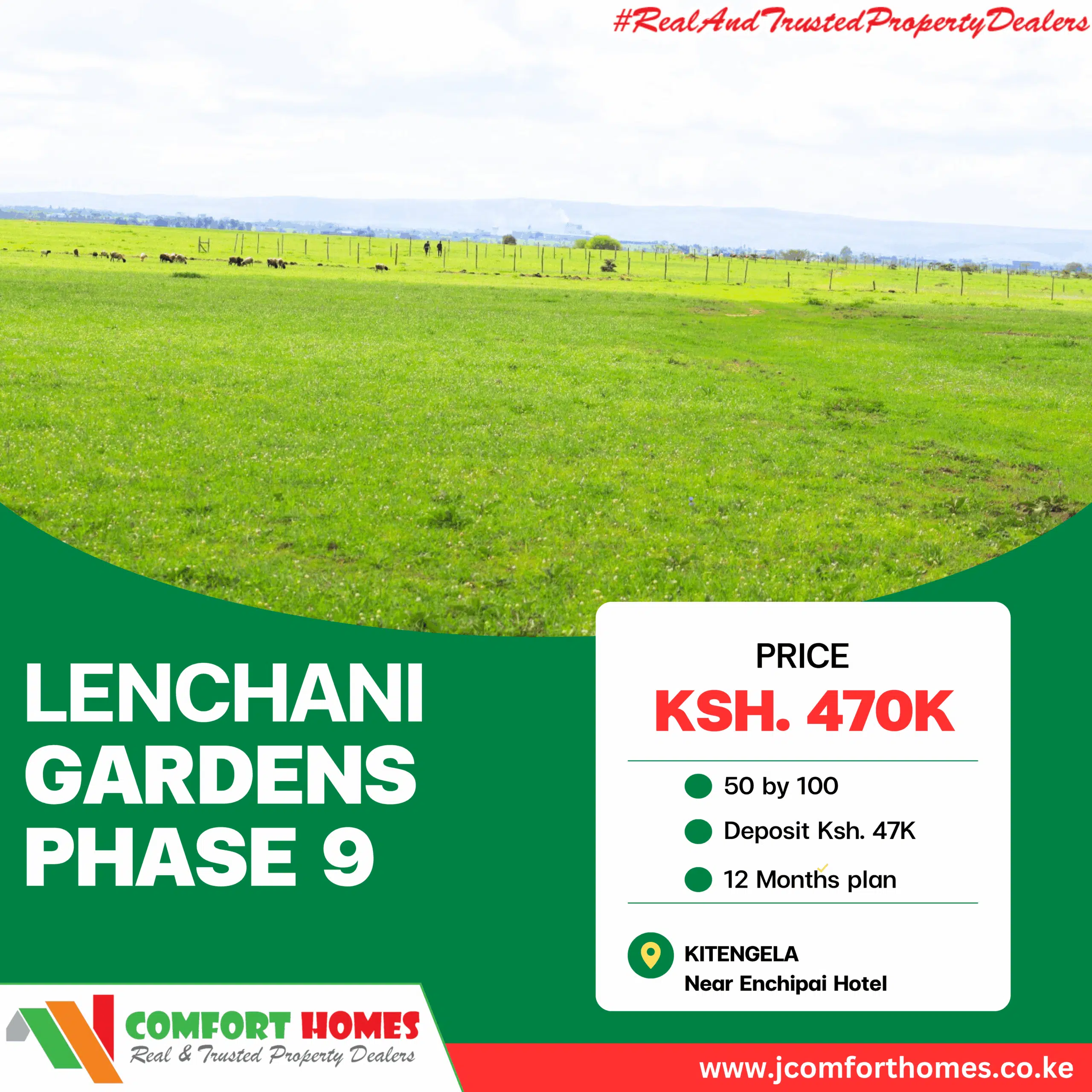 Lenchani Olturoto 50 by 100 @ 470K. Deposit is 10% (47,000) balance in 6-12 months. The plots have ready individual title deeds.